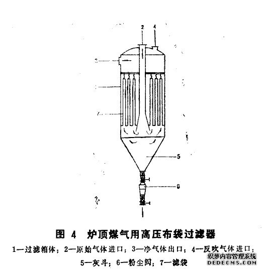 在下部裝置開啟之前,中間儲(chǔ)槽產(chǎn)生的壓力隨上部裝置開啟時(shí)通過降壓管減壓.泄漏的爐頂煤氣進(jìn)入被稱為“微型布袋過濾器”中凈化.而在此之前是由一條排風(fēng)管道在相應(yīng)的高度向大氣中排放.