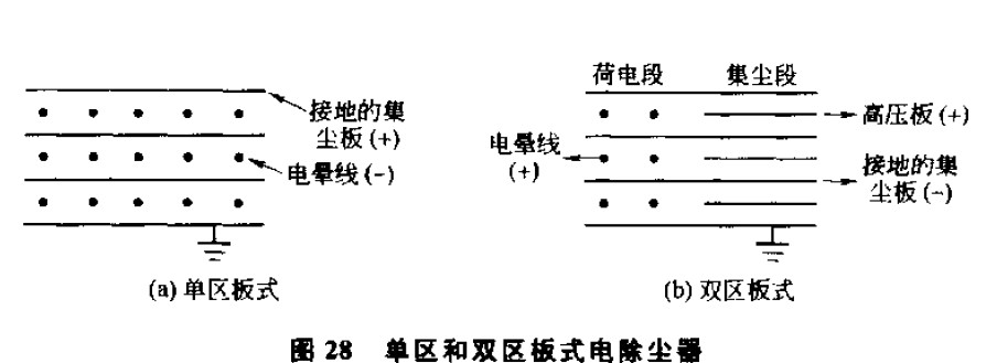 這種電除塵器具有前后兩個(gè)區(qū)域:前區(qū)安裝放電極,稱(chēng)為電離區(qū),粉塵首先進(jìn)人此區(qū)荷電;后區(qū)安裝收塵極,稱(chēng)為收塵區(qū),荷電粉塵在此區(qū)域被捕集。雙區(qū)電除塵器的電壓等級(jí)較低,通常采用正電暈放電,多用于空氣調(diào)節(jié)系統(tǒng)的凈化。