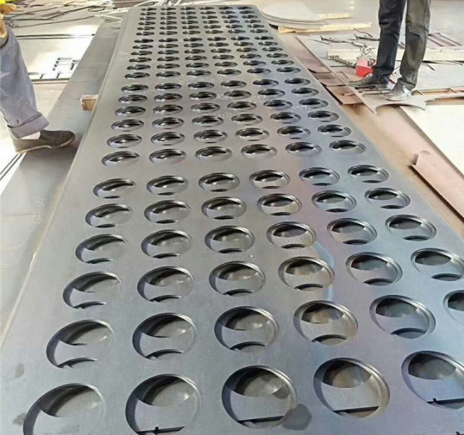 除塵器花板除承受濾袋和袋籠的重量外,還要承受除塵器內(nèi)的氣體壓力,所以要有足夠的剛度.如果稍有變形,就可能影響濾袋和花板孔間的密封效果.花板的鋼板厚度一般為4~6mm,主要取決于過濾室內(nèi)懸掛除塵器濾袋的數(shù)量.為增加花板的剛度,花板上應(yīng)增設(shè)加強筋.花板外觀應(yīng)平整、光潔,不應(yīng)有翹曲或凹凸不平等缺陷,其平面度偏差不大于花板長度的2/1000.花板孔的加工應(yīng)采用沖孔或采用等離子切割,不允許采用氣割。
